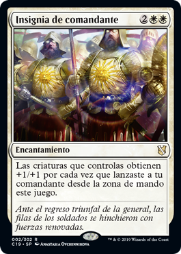 | Rules | Creatures you control get +1/+1 for each time you've cast your commander from the command zone this game. |