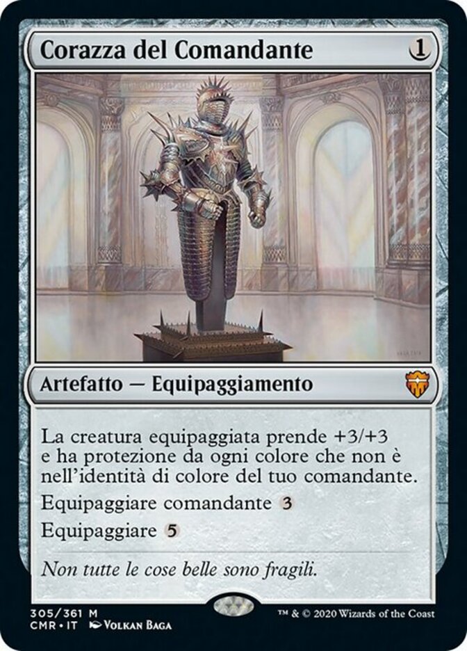 | Rules | Equipped creature gets +3/+3 and has protection from each color that's not in your commander's color identity. Equip commander Equip |