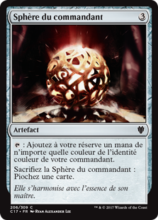 | Rules | : Add one mana of any color in your commander's color identity. Sacrifice Commander's Sphere: Draw a card. |