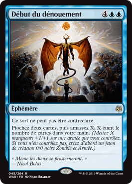 | Rules | This spell can't be countered. Draw two cards, then amass X, where X is the number of cards in your hand. (Put X +1/+1 counters on an Army you control. If you don't control one, create a 0/0 black Zombie Army creature token first.) |