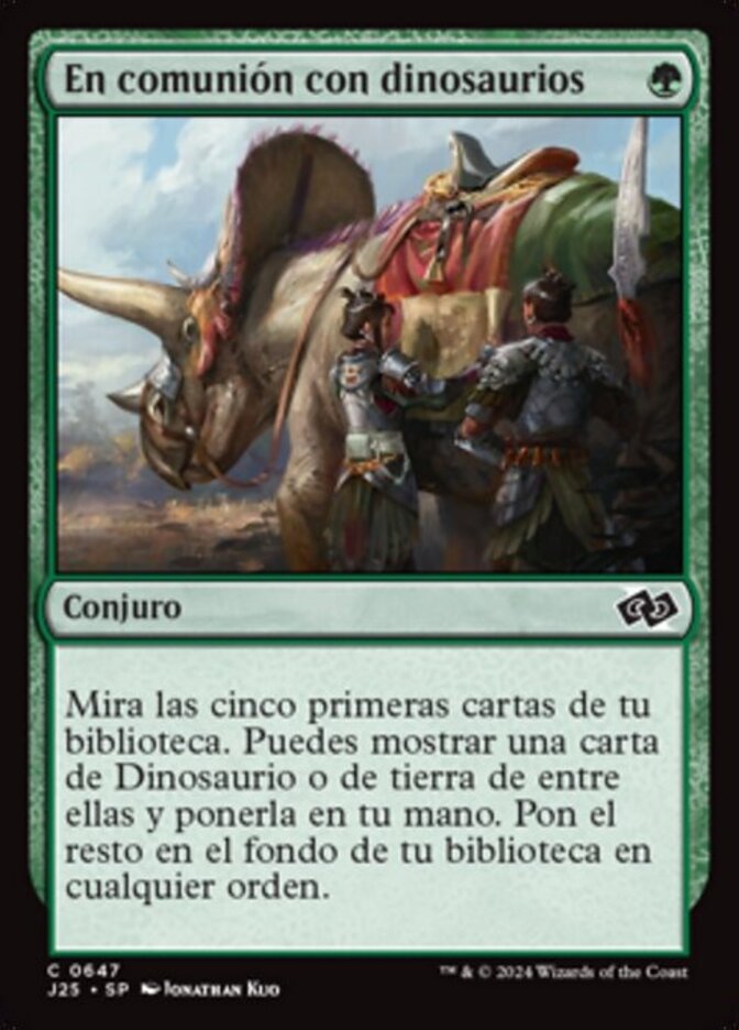 | Rules | Look at the top five cards of your library. You may reveal a Dinosaur or land card from among them and put it into your hand. Put the rest on the bottom of your library in any order. |
