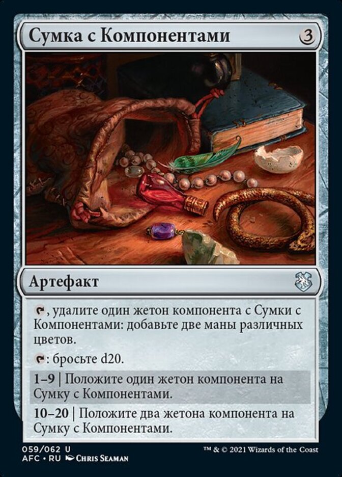 | Rules | , Remove a component counter from Component Pouch: Add two mana of different colors. : Roll a d20. 1—9 | Put a component counter on Component Pouch. 10—20 | Put two component counters on Component Pouch. |