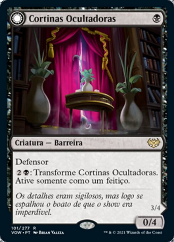 | Rules | Defender : Transform Concealing Curtains. Activate only as a sorcery. // Menace When this creature transforms into Revealing Eye, target opponent reveals their hand. You may choose a nonland card from it. If you do, that player discards that card, then draws a card. |
