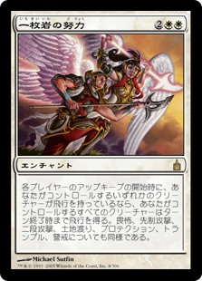 | Rules | At the beginning of each upkeep, creatures you control gain flying until end of turn if a creature you control has flying. The same is true for fear, first strike, double strike, landwalk, protection, trample, and vigilance. |