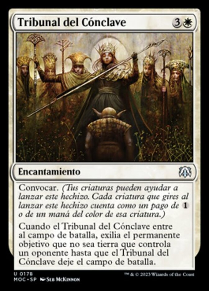 | Rules | Convoke (Your creatures can help cast this spell. Each creature you tap while casting this spell pays for or one mana of that creature's color.) When Conclave Tribunal enters the battlefield, exile target nonland permanent an opponent controls until Conclave Tribunal leaves the battlefield. |