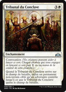 | Rules | Convoke (Your creatures can help cast this spell. Each creature you tap while casting this spell pays for or one mana of that creature's color.) When Conclave Tribunal enters the battlefield, exile target nonland permanent an opponent controls until Conclave Tribunal leaves the battlefield. |