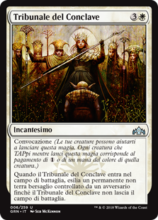 | Rules | Convoke (Your creatures can help cast this spell. Each creature you tap while casting this spell pays for or one mana of that creature's color.) When Conclave Tribunal enters the battlefield, exile target nonland permanent an opponent controls until Conclave Tribunal leaves the battlefield. |