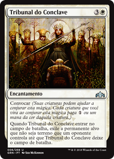 | Rules | Convoke (Your creatures can help cast this spell. Each creature you tap while casting this spell pays for or one mana of that creature's color.) When Conclave Tribunal enters the battlefield, exile target nonland permanent an opponent controls until Conclave Tribunal leaves the battlefield. |