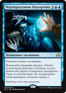 | Rules | Counter target spell. Investigate three times. (To investigate, create a colorless Clue artifact token with ", Sacrifice this artifact: Draw a card.") |