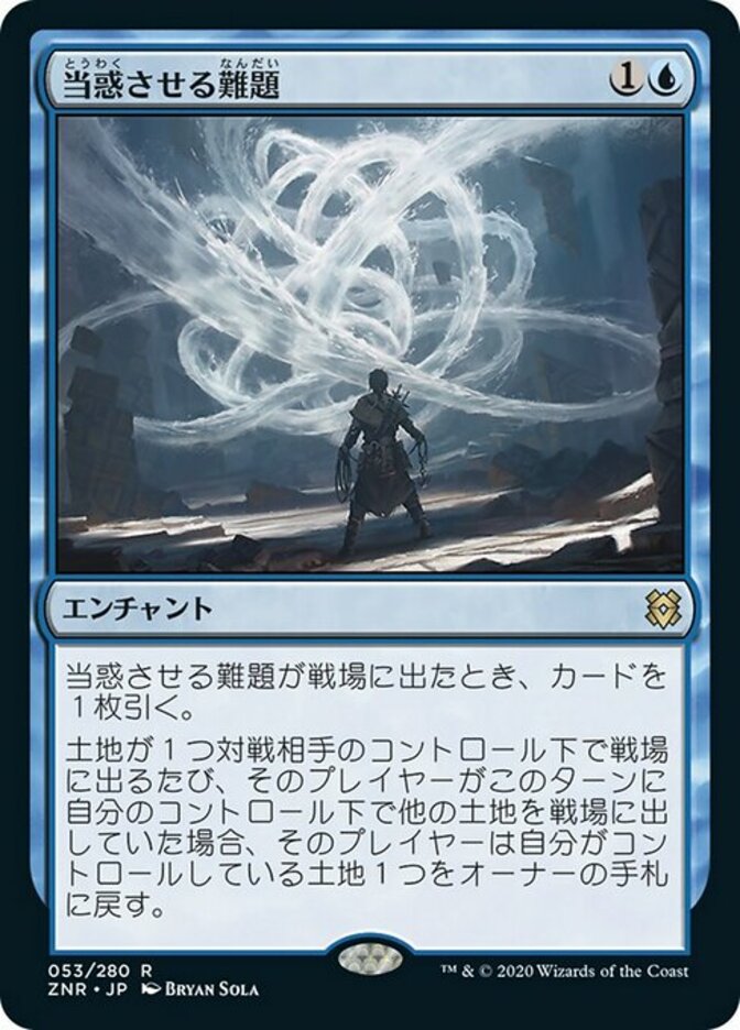 | Rules | When Confounding Conundrum enters the battlefield, draw a card. Whenever a land enters the battlefield under an opponent's control, if that player had another land enter the battlefield under their control this turn, they return a land they control to its owner's hand. |