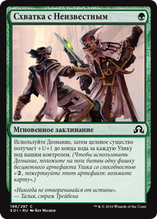 | Rules | Investigate, then target creature gets +1/+1 until end of turn for each Clue you control. (To investigate, create a colorless Clue artifact token with ", Sacrifice this artifact: Draw a card.") |