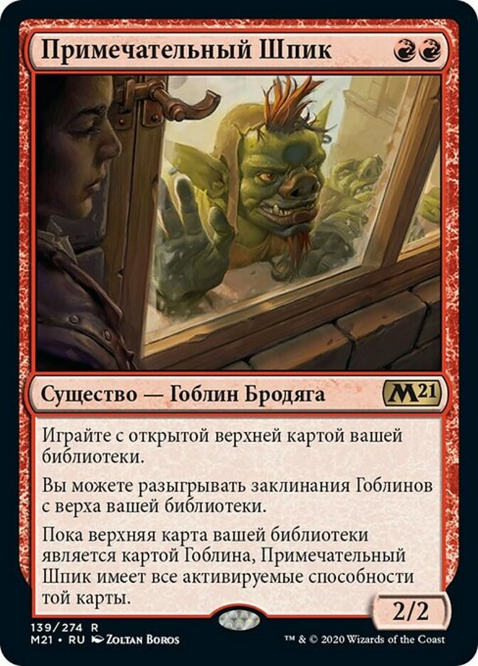 | Rules | Play with the top card of your library revealed. You may cast Goblin spells from the top of your library. As long as the top card of your library is a Goblin card, Conspicuous Snoop has all activated abilities of that card. |
