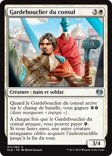 | Rules | When Consul's Shieldguard enters the battlefield, you get (two energy counters). Whenever Consul's Shieldguard attacks, you may pay . If you do, another target attacking creature gains indestructible until end of turn. |