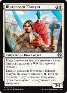 | Rules | When Consul's Shieldguard enters the battlefield, you get (two energy counters). Whenever Consul's Shieldguard attacks, you may pay . If you do, another target attacking creature gains indestructible until end of turn. |