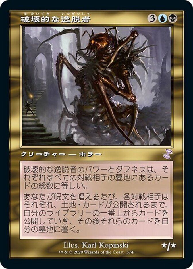 | Rules | Consuming Aberration's power and toughness are each equal to the number of cards in your opponents' graveyards. Whenever you cast a spell, each opponent reveals cards from the top of their library until they reveal a land card, then puts those cards into their graveyard. |