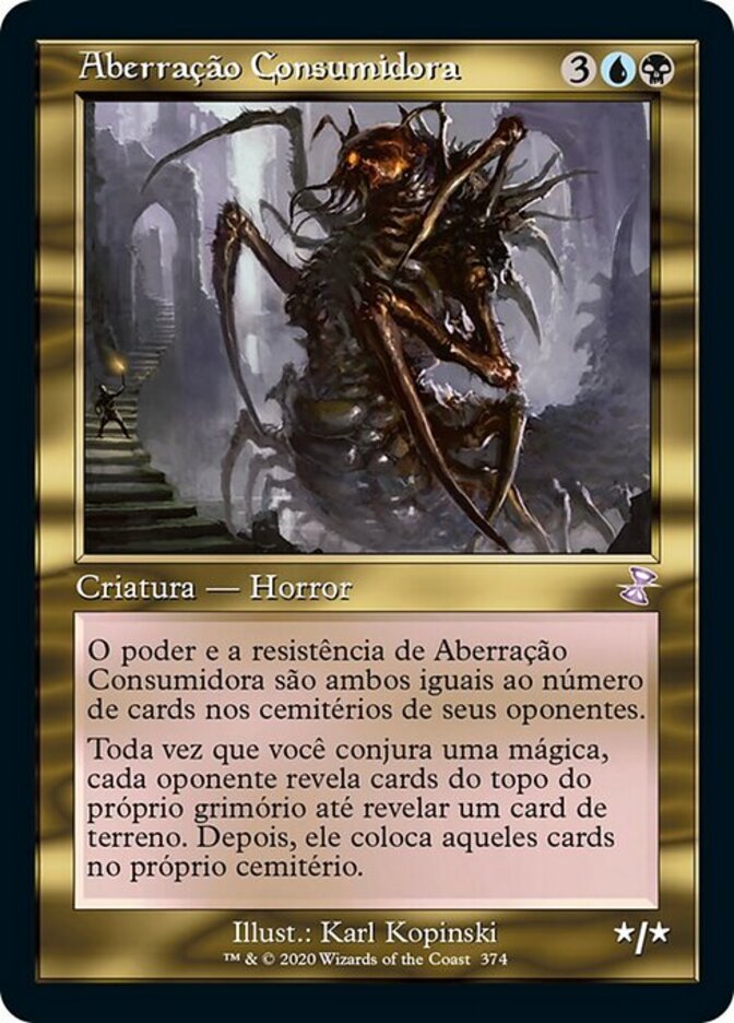 | Rules | Consuming Aberration's power and toughness are each equal to the number of cards in your opponents' graveyards. Whenever you cast a spell, each opponent reveals cards from the top of their library until they reveal a land card, then puts those cards into their graveyard. |