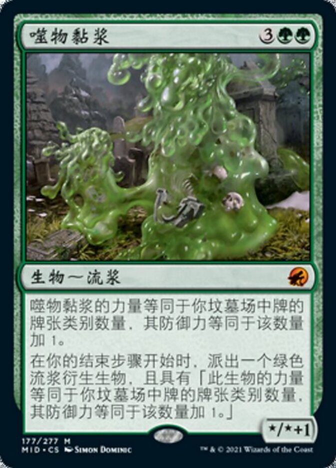 | Rules | Consuming Blob's power is equal to the number of card types among cards in your graveyard and its toughness is equal to that number plus 1. At the beginning of your end step, create a green Ooze creature token with "This creature's power is equal to the number of card types among cards in your graveyard and its toughness is equal to that number plus 1." |