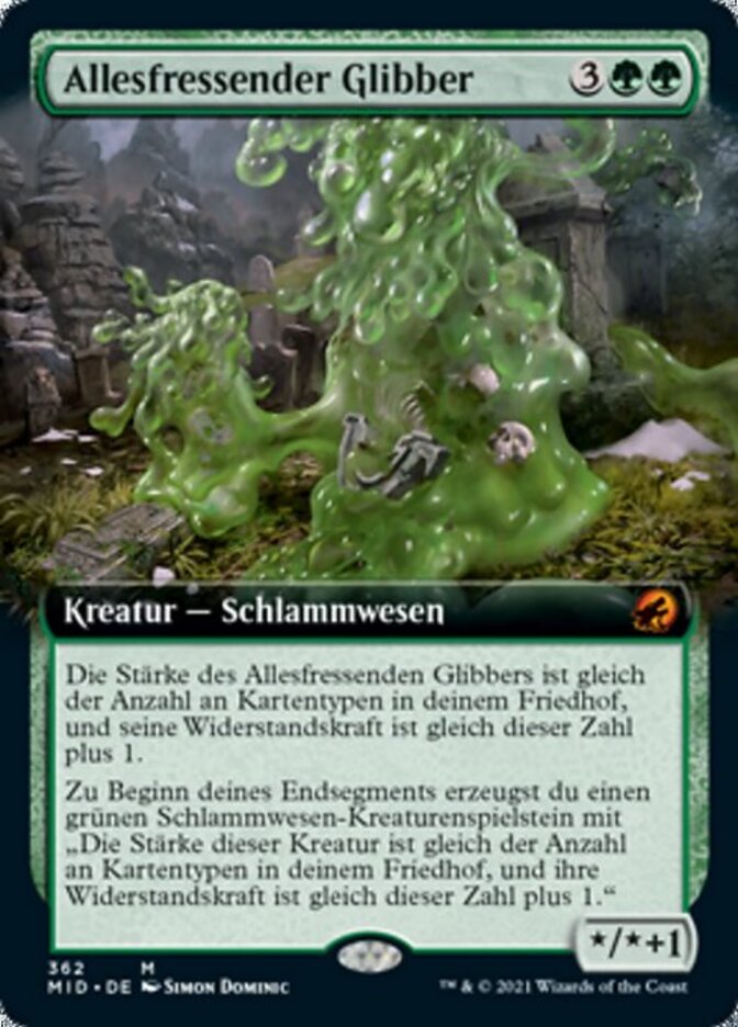 | Rules | Consuming Blob's power is equal to the number of card types among cards in your graveyard and its toughness is equal to that number plus 1. At the beginning of your end step, create a green Ooze creature token with "This creature's power is equal to the number of card types among cards in your graveyard and its toughness is equal to that number plus 1." |