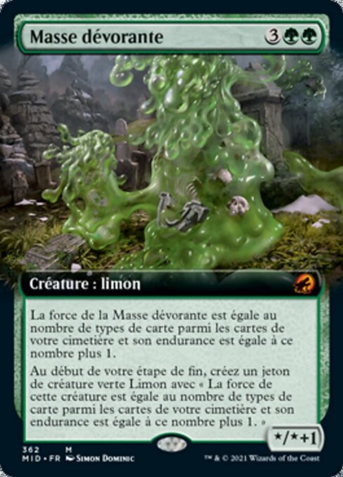 | Rules | Consuming Blob's power is equal to the number of card types among cards in your graveyard and its toughness is equal to that number plus 1. At the beginning of your end step, create a green Ooze creature token with "This creature's power is equal to the number of card types among cards in your graveyard and its toughness is equal to that number plus 1." |