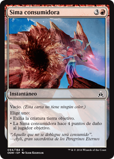 | Rules | Devoid (This card has no color.) Choose one — • Exile target land creature. • Consuming Sinkhole deals 4 damage to target player or planeswalker. |