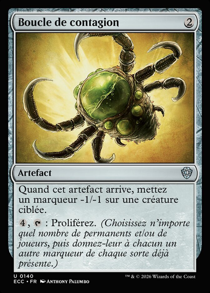 | Rules | When Contagion Clasp enters the battlefield, put a -1/-1 counter on target creature. , : Proliferate. (Choose any number of permanents and/or players, then give each another counter of each kind already there.) |