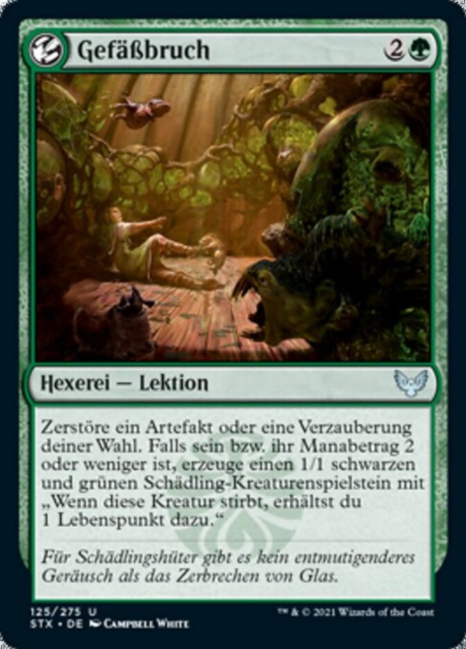 | Rules | Destroy target artifact or enchantment. If its mana value is 2 or less, create a 1/1 black and green Pest creature token with "When this creature dies, you gain 1 life." |