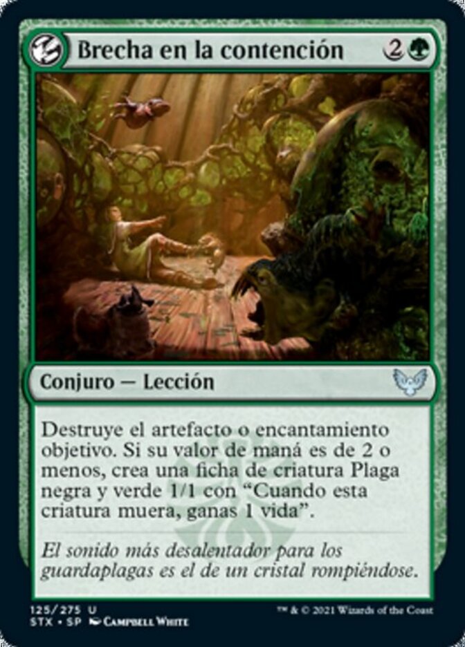 | Rules | Destroy target artifact or enchantment. If its mana value is 2 or less, create a 1/1 black and green Pest creature token with "When this creature dies, you gain 1 life." |