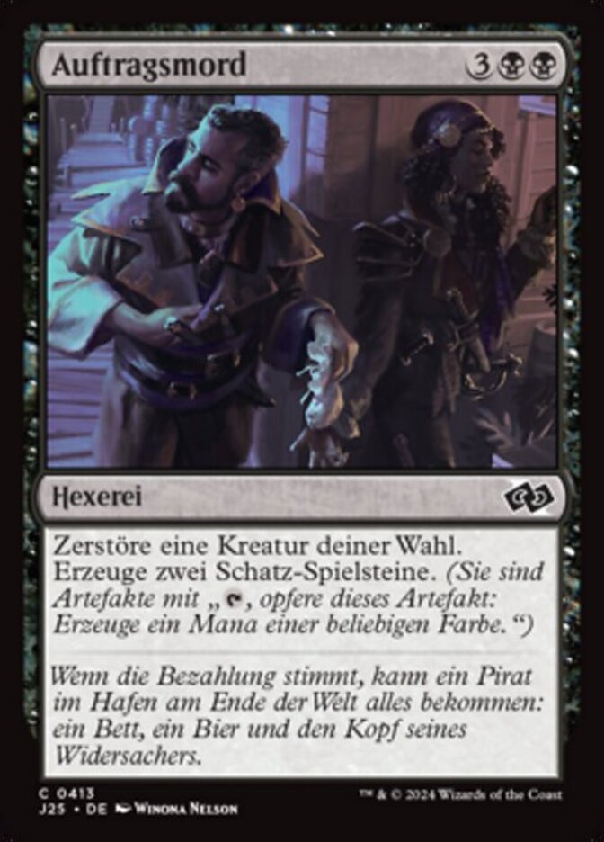 | Rules | Destroy target creature. Create two Treasure tokens. (They're artifacts with ", Sacrifice this artifact: Add one mana of any color.") |