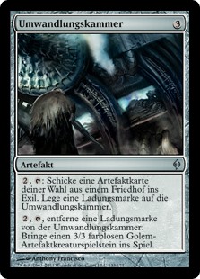 | Rules | , : Exile target artifact card from a graveyard. Put a charge counter on Conversion Chamber. , , Remove a charge counter from Conversion Chamber: Create a 3/3 colorless Phyrexian Golem artifact creature token. |