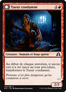 | Rules | At the beginning of each upkeep, if no spells were cast last turn, transform Convicted Killer. // At the beginning of each upkeep, if a player cast two or more spells last turn, transform Branded Howler. |