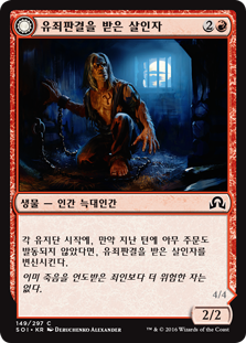 | Rules | At the beginning of each upkeep, if no spells were cast last turn, transform Convicted Killer. // At the beginning of each upkeep, if a player cast two or more spells last turn, transform Branded Howler. |