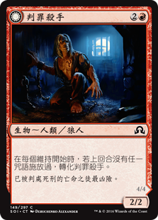 | Rules | At the beginning of each upkeep, if no spells were cast last turn, transform Convicted Killer. // At the beginning of each upkeep, if a player cast two or more spells last turn, transform Branded Howler. |