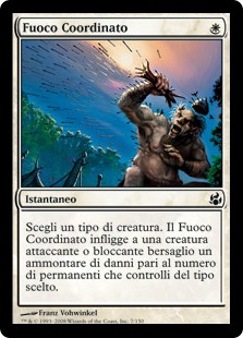 | Rules | Choose a creature type. Coordinated Barrage deals damage to target attacking or blocking creature equal to the number of permanents you control of the chosen type. |