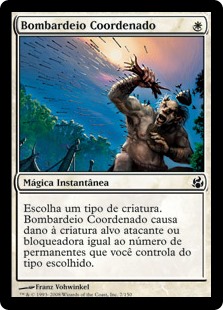 | Rules | Choose a creature type. Coordinated Barrage deals damage to target attacking or blocking creature equal to the number of permanents you control of the chosen type. |