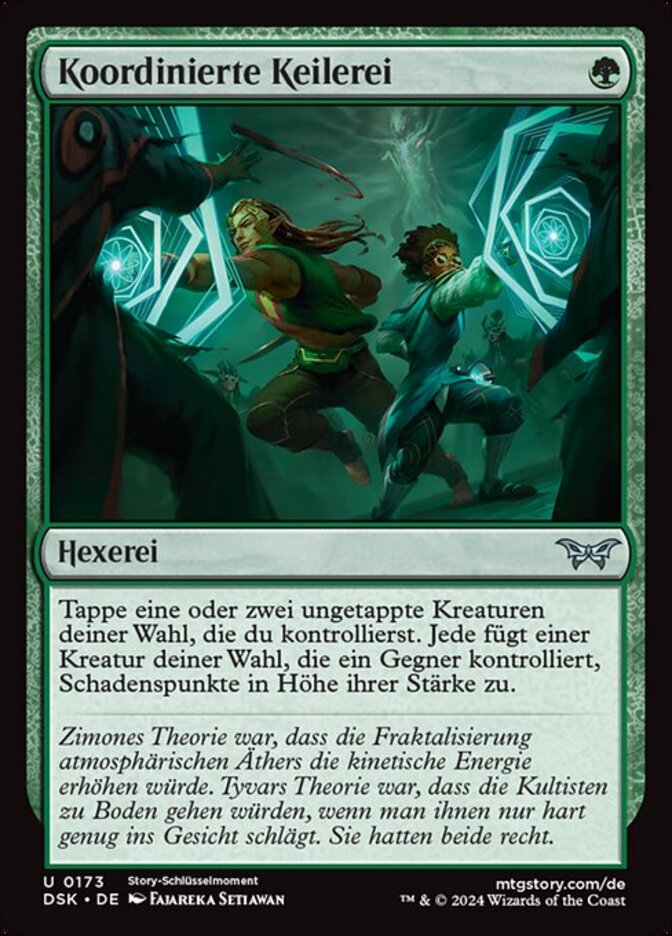 | Flavor | Zimone's theory was that the fractalization of atmospheric aether would increase kinetic energy. Tyvar's theory was that if you hit cultists in the face really hard, they would fall down. They were both right. |