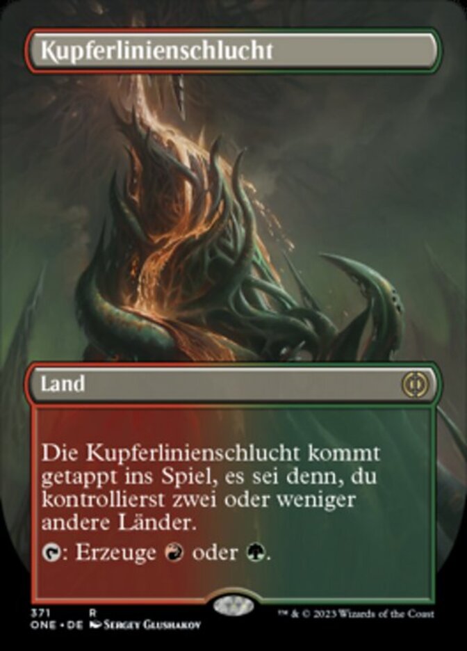 | Rules | Copperline Gorge enters the battlefield tapped unless you control two or fewer other lands. : Add or . |