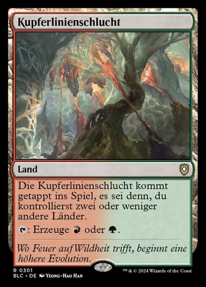 | Rules | Copperline Gorge enters the battlefield tapped unless you control two or fewer other lands. : Add or . |