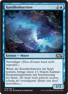 | Rules | Defender (This creature can't attack.) When Coral Barrier enters the battlefield, create a 1/1 blue Squid creature token with islandwalk. (It can't be blocked as long as defending player controls an Island.) |