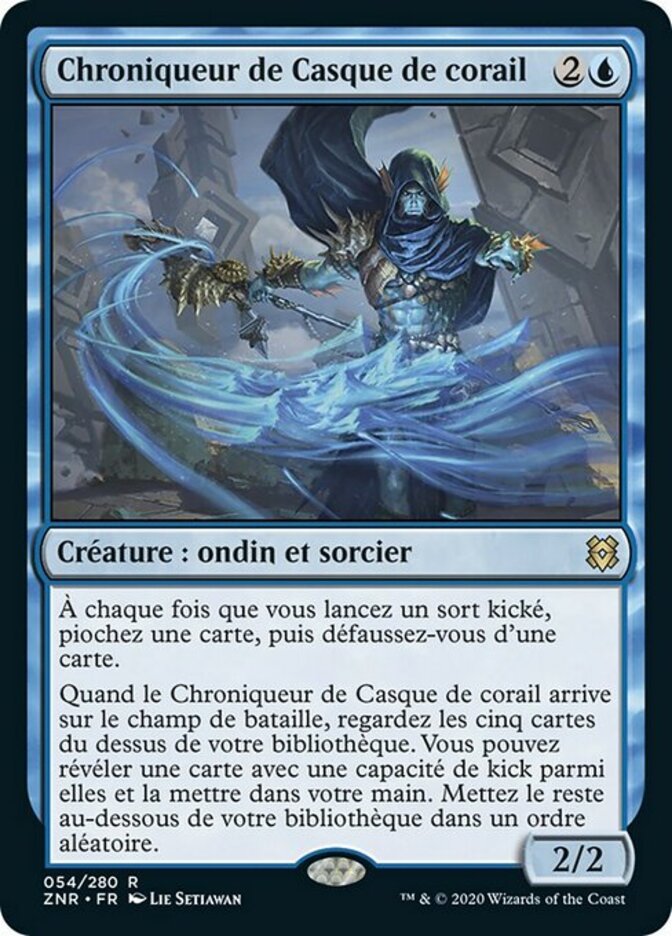 | Rules | Whenever you cast a kicked spell, draw a card, then discard a card. When Coralhelm Chronicler enters the battlefield, look at the top five cards of your library. You may reveal a card with a kicker ability from among them and put it into your hand. Put the rest on the bottom of your library in a random order. |