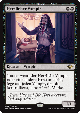 | Rules | Whenever Cordial Vampire or another creature dies, put a +1/+1 counter on each Vampire you control. |