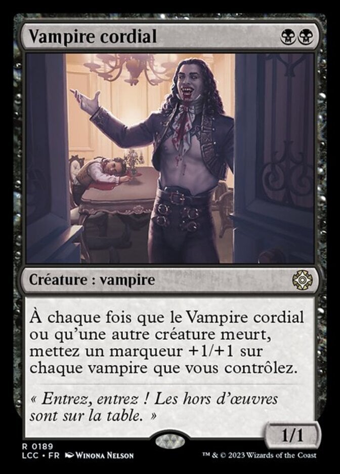 | Rules | Whenever Cordial Vampire or another creature dies, put a +1/+1 counter on each Vampire you control. |