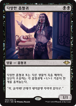| Rules | Whenever Cordial Vampire or another creature dies, put a +1/+1 counter on each Vampire you control. |