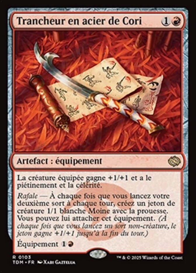 | Rules | Equipped creature gets +1/+1 and has trample and haste. Flurry — Whenever you cast your second spell each turn, create a 1/1 white Monk creature token with prowess. You may attach this Equipment to it. (Whenever you cast a noncreature spell, the token gets +1/+1 until end of turn.) Equip |