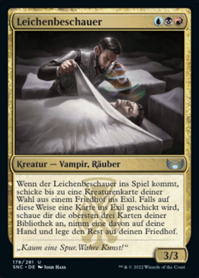 Rules When Corpse Appraiser enters the battlefield, exile up to one target creature card from a graveyard. If a card is put into exile this way, look at the top three cards of your library, then put one of those cards into your hand and the rest into your graveyard.