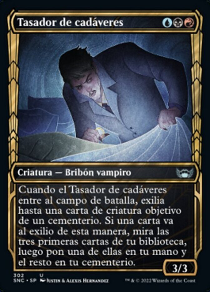 | Rules | When Corpse Appraiser enters the battlefield, exile up to one target creature card from a graveyard. If a card is put into exile this way, look at the top three cards of your library, then put one of those cards into your hand and the rest into your graveyard. |