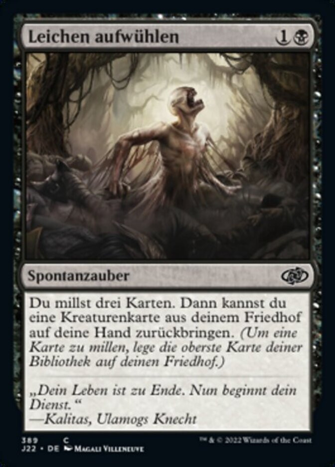 | Rules | Mill three cards, then you may return a creature card from your graveyard to your hand. (To mill a card, put the top card of your library into your graveyard.) |