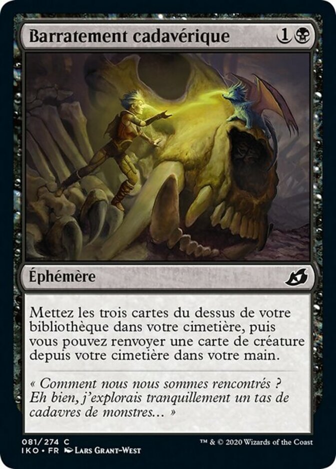 | Rules | Mill three cards, then you may return a creature card from your graveyard to your hand. (To mill a card, put the top card of your library into your graveyard.) |