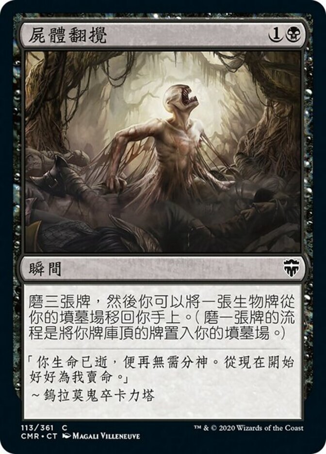| Rules | Mill three cards, then you may return a creature card from your graveyard to your hand. (To mill a card, put the top card of your library into your graveyard.) |