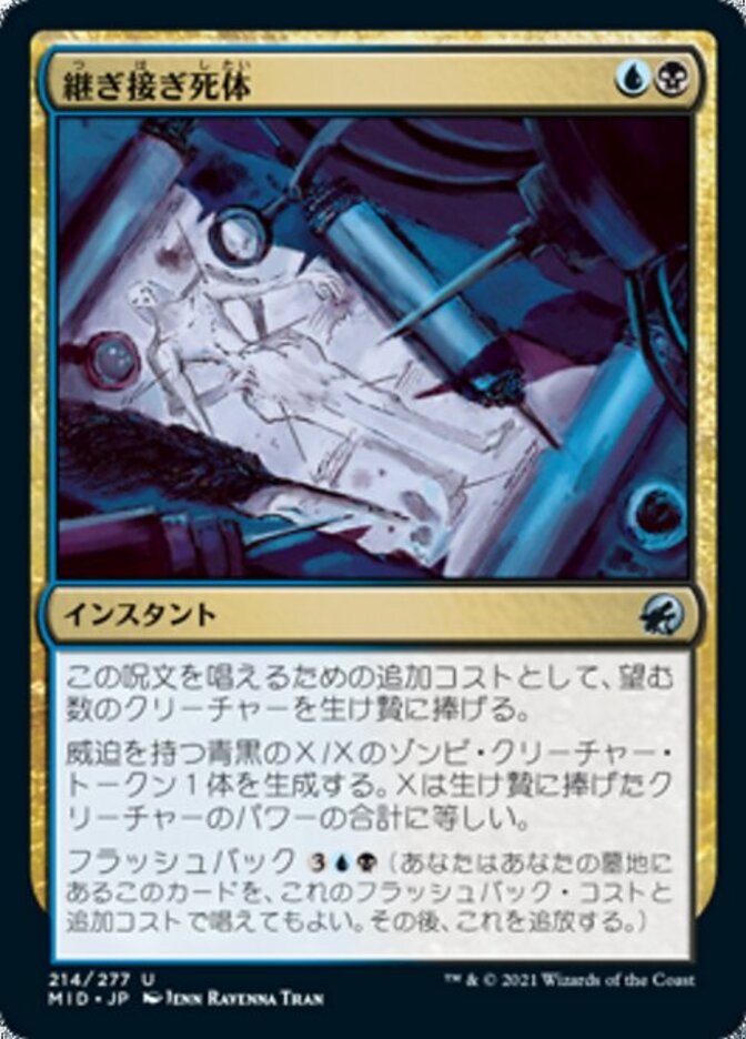 | Rules | As an additional cost to cast this spell, sacrifice any number of creatures. Create an X/X blue and black Zombie creature token with menace, where X is the total power of the sacrificed creatures. Flashback (You may cast this card from your graveyard for its flashback cost and any additional costs. Then exile it.) |