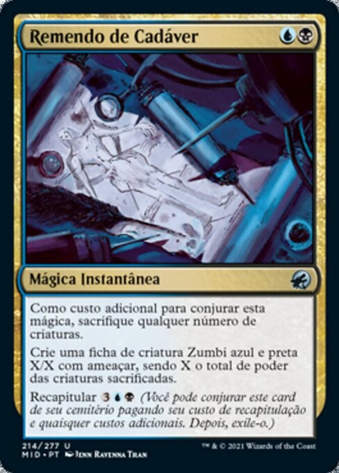 | Rules | As an additional cost to cast this spell, sacrifice any number of creatures. Create an X/X blue and black Zombie creature token with menace, where X is the total power of the sacrificed creatures. Flashback (You may cast this card from your graveyard for its flashback cost and any additional costs. Then exile it.) |